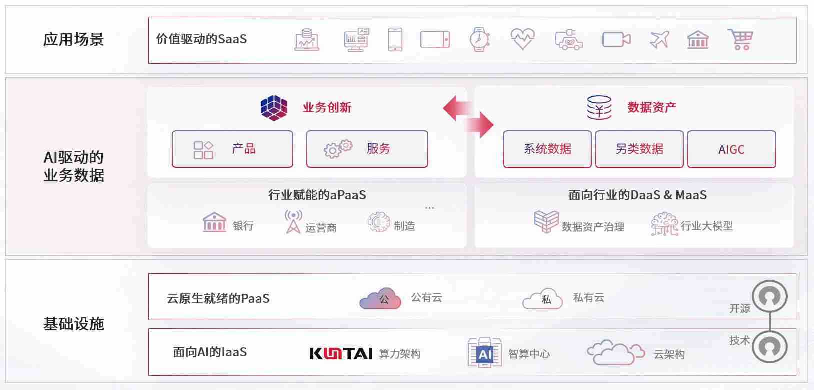 数字时代,,,围绕企业数字化转型的关键要素,,伟德bv1946数码开创性的提出数云融合战略和技术体系框架,,,,着力在云原生、、、、数字原生、、AI原生和信创产业上架构产品和服务能力,,,为处在不同数字化转型阶段的快消零售、、、、汽车、、、金融、、、医疗、、、、政企、、、教育、、、运营商等行业客户提供泛在的敏捷IT能力和融合的数据驱动能力,,构建跨界融合创新的数字业务场景和新业务模式,,,助力企业级客户建立面向未来的核心能力和竞争优势,,,,全面推动社会的数字化、、、智能化转型升级。。。